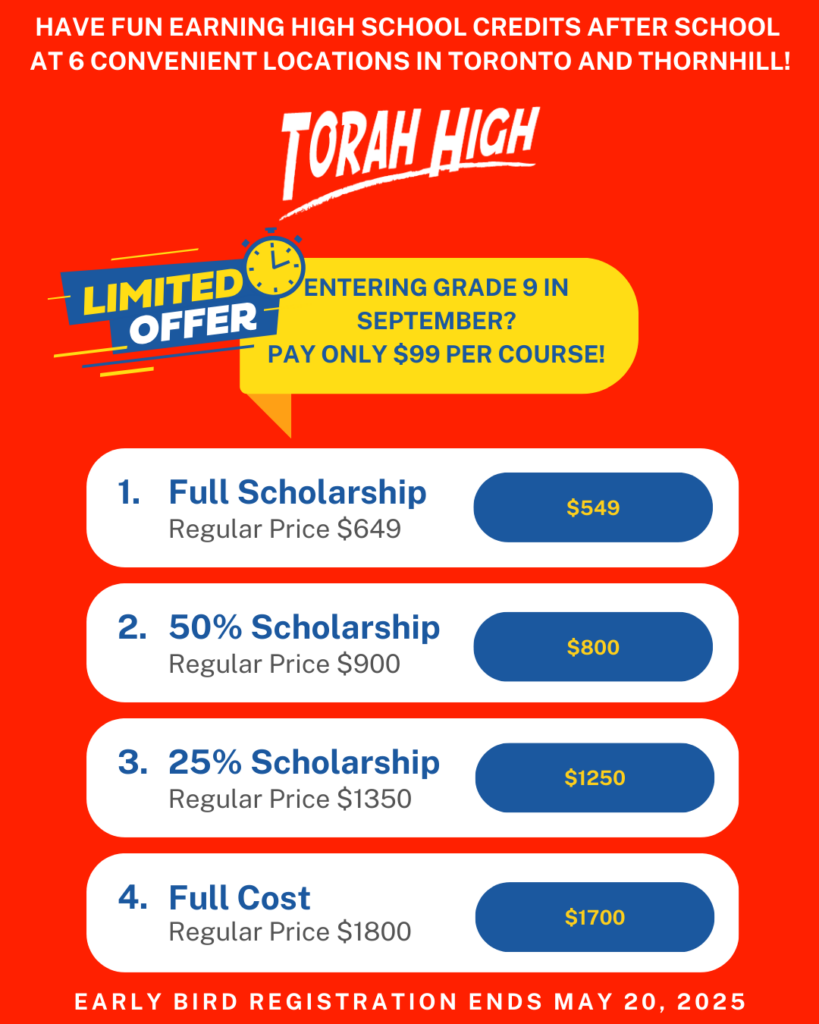 Earn your high school credits after school at Torah High!